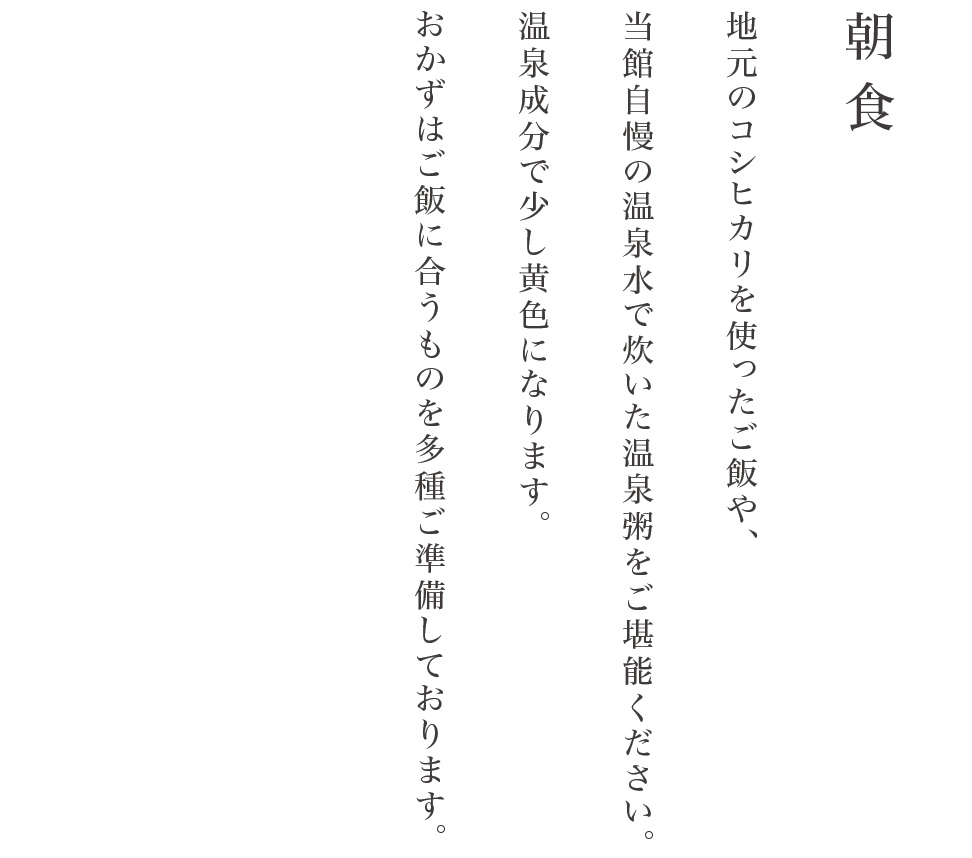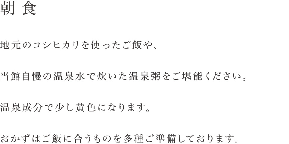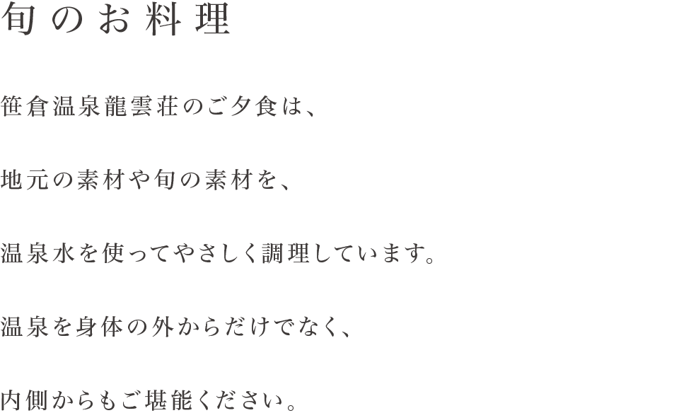 当館のお料理には、胃腸にやさしく素材の味がまろやかになる温泉水を使用しています。