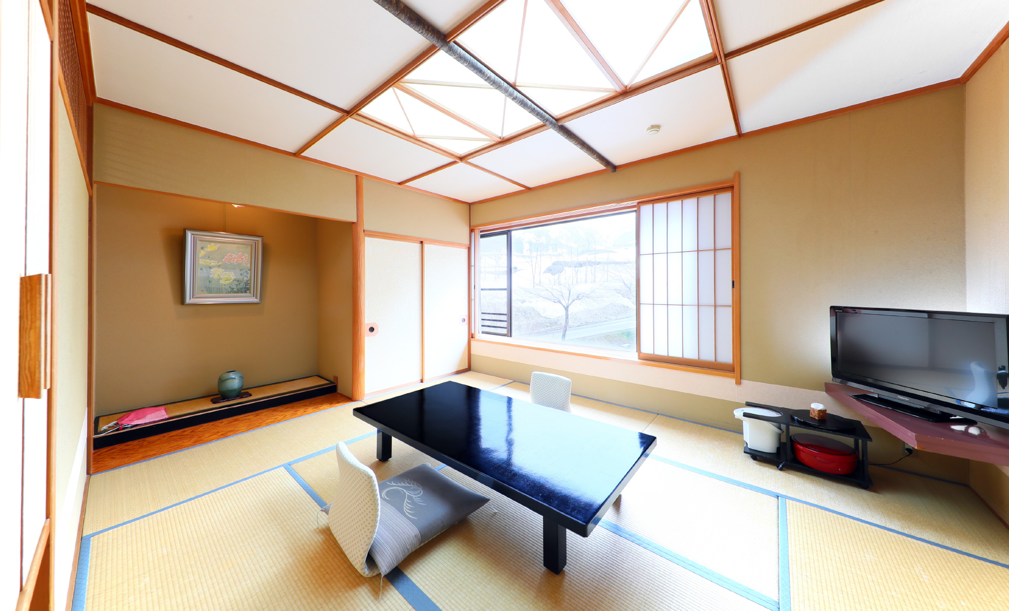 広縁を設けたゆったりとした和室。落ち着きのある調度品が心地よいひとときを演出します。
